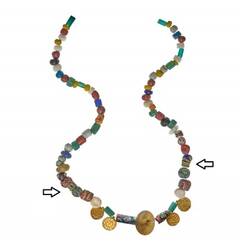 Perlen wurden nicht nur als Halskettchen getragen, sondern auch als Besatz auf Gewänder aufgenäht, besonders um den Ausschnitt oder entlang von Gewandkanten. Die Farben und Formen waren einem schnellen Modewechsel unterworfen. Die meisten Perlen wurden lokal hergestellt, komplizierte Formen aber auch aus spezialisierten Werkstätten importiert. Die Ensembles konnten durch Perlen aus weiteren Materialien wie Bernstein, Amethyst oder anderem Material ergänzt werden.