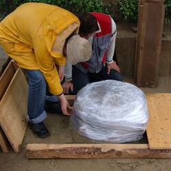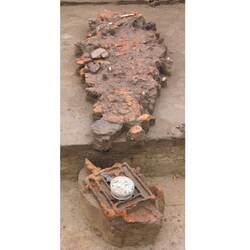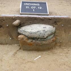 2012 stieß man anlässlich einer Feldbegehung bei Bad Füssing unweit des Inns auf eine größere Ansammlung von römischen Metallobjekten. Bei der anschließenden Ausgrabung entdeckte man zunächst einen Töpferofen. Vor seiner Öffnung lag ein Bratrost mit ineinandergesteckter Kelle und Sieb. Später fand man auch ein Kesselgehänge und landwirtschaftliche Geräte sowie einen umgestürzten, mehrfach geflickten alten Bronzekessel mit großen eisernen Griffen. Dieser wurde mit großem Aufwand im Block geborgen und anschließend in der Archäologischen Staatssammlung untersucht.