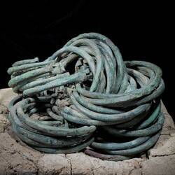 Spangen- oder ringförmig gebogene Kupferstäbe sind typische Funde der frühen Bronzezeit im Alpenvorland. Der wertvolle Rohstoff konnte so von seinen Lagerstätten und Verhüttungsplätzen in ganz Europa verhandelt werden. Nicht selten waren die Barren zu Bündeln aus Fünfern und Zehnern geschnürt, was einen spannenden Einblick in das vorgeschichtliche Zahlenverständnis gibt. Archäologen mutmaßen, dass den Barren eine Funktion zukam, die sich mit der des heutigen Geldes vergleichen lässt.