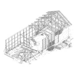 Die gezeigten Wandputzstücke mit farbigen Malereien stammen aus Epfach, einer römischen Straßensiedlung namens Abodiacum am Lech. Die teilweise dunkel verfärbten Oberflächen zeigen, dass das zugehörige Gebäude in einem Brand zerstört oder wenigstens beschädigt wurde. Dadurch ist auch der Lehm der Flechtwerkwände unter der Putzschicht zu harten Brocken verziegelt. Abdrücke der geflochtenen Holzruten vom Wandaufbau sind gut im gebrannten Lehm erkennbar. Der gesamte Gebäudeschutt mitsamt den anhaftenden Malereien wurde vor Ort planiert und auf diese Weise der Platz für einen Neubau vorbereitet.