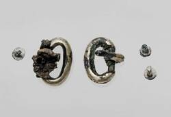 Die vogelförmigen Fibeln aus Silber, die im Brustbereich lagen, sind dagegen einheimische „normale“ Formen. An den Nadeln der Scheibenfibeln hatte man ein Gehängeband befestigt, an dem ein Messer und eine große Perle aus Chalcedon – wohl ein Amulett – hingen.